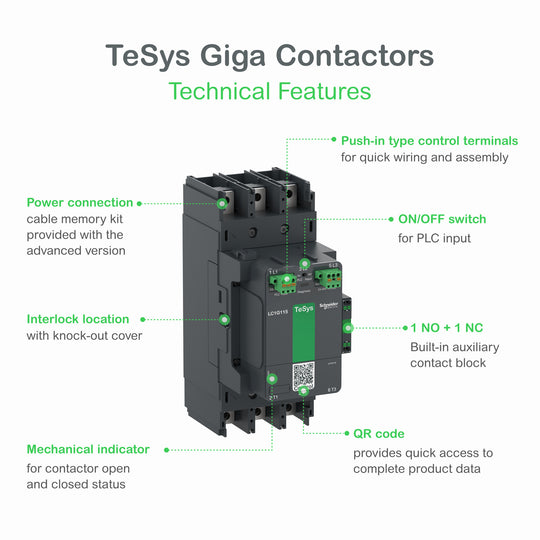 Schneider Contacteur TeSys LC1G 150A 440V 3P AC3 Standard 100-250V AC-DC bobine Contacteur haute puissance TeSys Giga, 3 pôles (3 NO) pour applications de catégorie AC-3 jusqu'à 150 A 90 kW à 440 V. Il fournit...Prix régulier 4,200.00 DH -